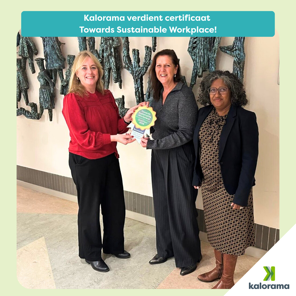 Kalorama ontvangt certificaat Towards Sustainable Workplace